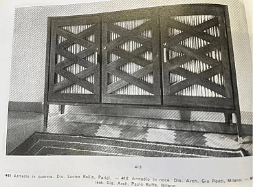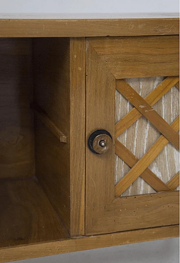 It is made up of a door, also decorated with a diamond pattern and a brass handle in round patina, and an open compartment on the left.