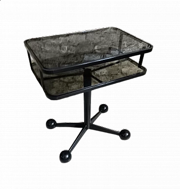 Coffee table in metal with casters and double glass shelf made by the Allegri manufactory of Parma.