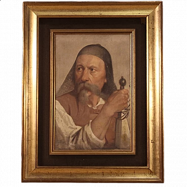 Signed oil on canvas depicting warrior in arms, 19th century