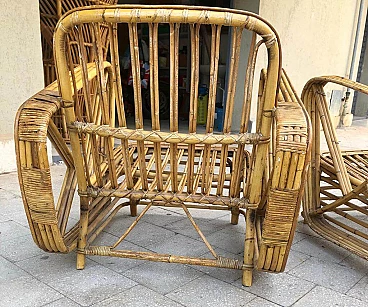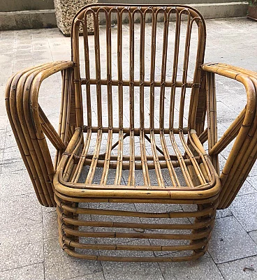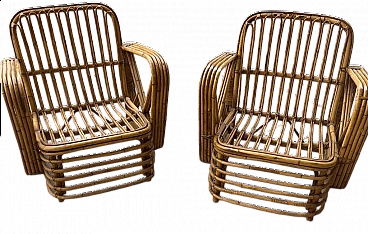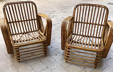 Pair of armchairs in rattan in the style of Paul Frankl in very good overall condition, healthy and intact, as shown in the photos. The armchairs have no defects and may show slight traces of wear due to the passage of time.