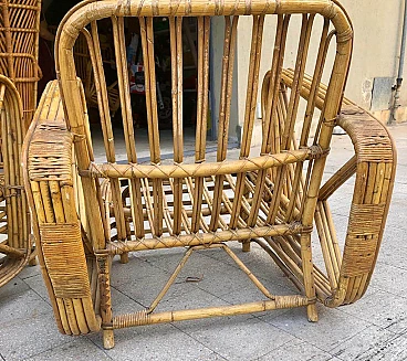 Pair of Pretzel armchairs in rattan in the style of Paul Frankl, 1950s