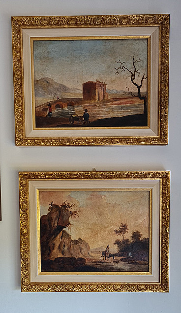 Pair of landscape paintings, oil on canvas, '700