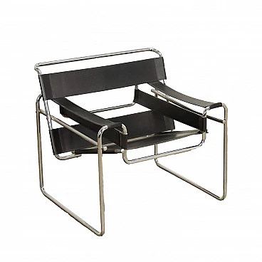 Armchair in tubular and leather in the style of Marcel Breuer, 1980s