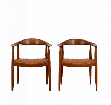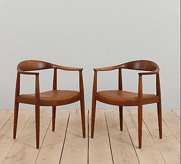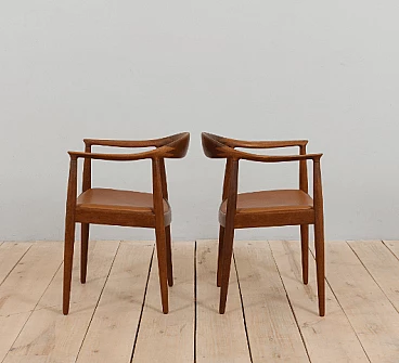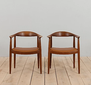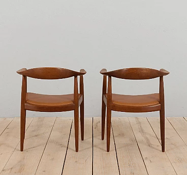 Pair of Model 503 armchairs in teak and leather by Hans Wegner for Johannes Hansen, 1960s