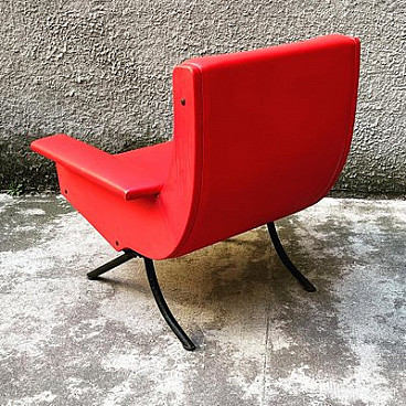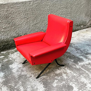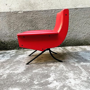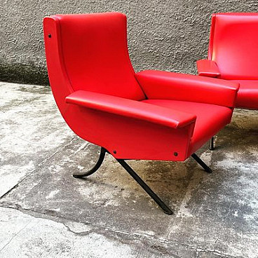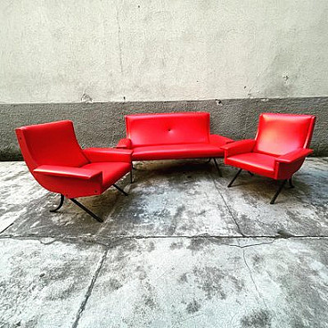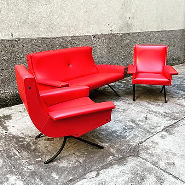 Sofa and pair of armchairs in red skai, 1960s