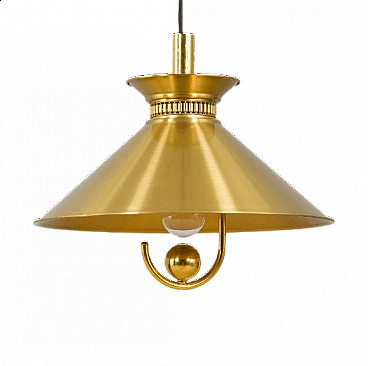 Brass chandelier designed and manufactured by the Danish lighting company Frandsen in the 1960s. Preserved manufacturing label. The shapes of Frandsen Lightning lamps are very geometric, even in their simplicity. Made of solid brass sheet, it requires an E27 bulb. Fantastic condition with slight traces of wear.