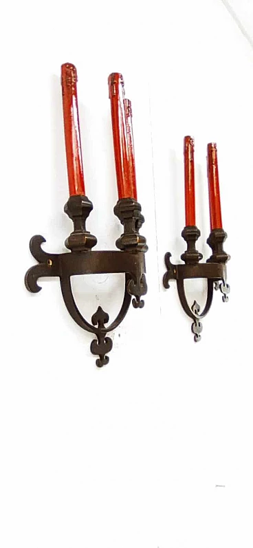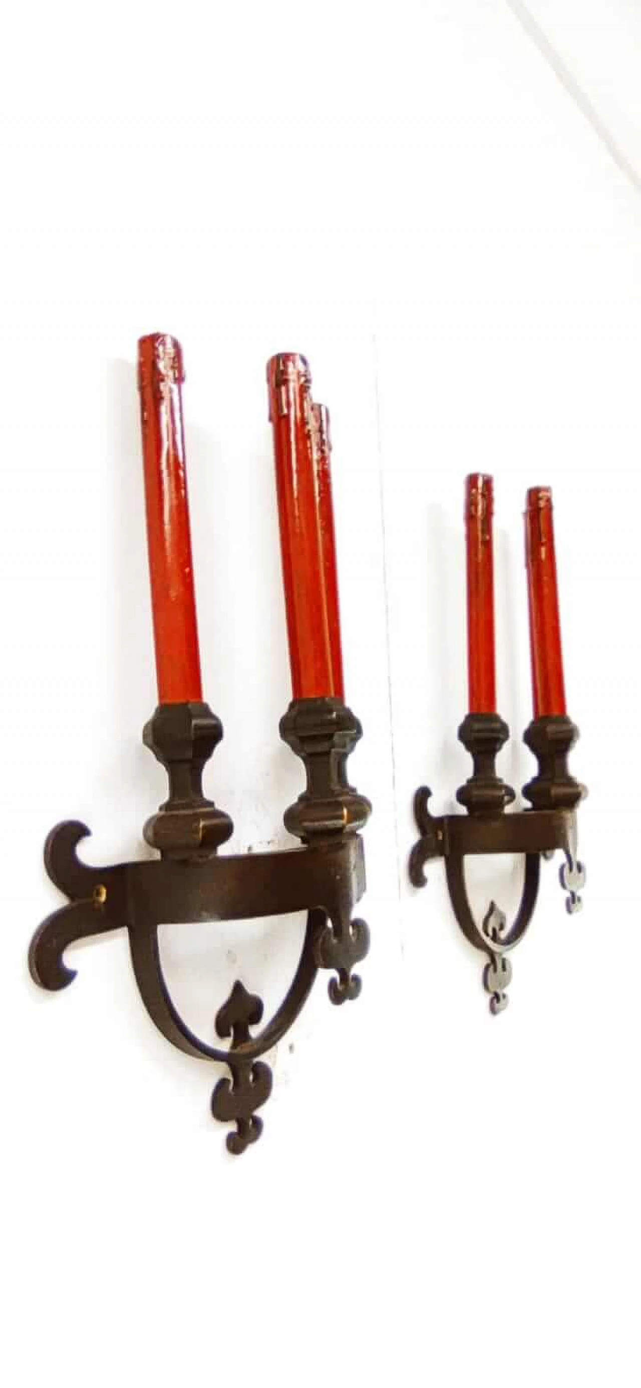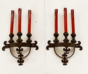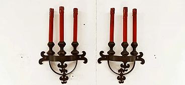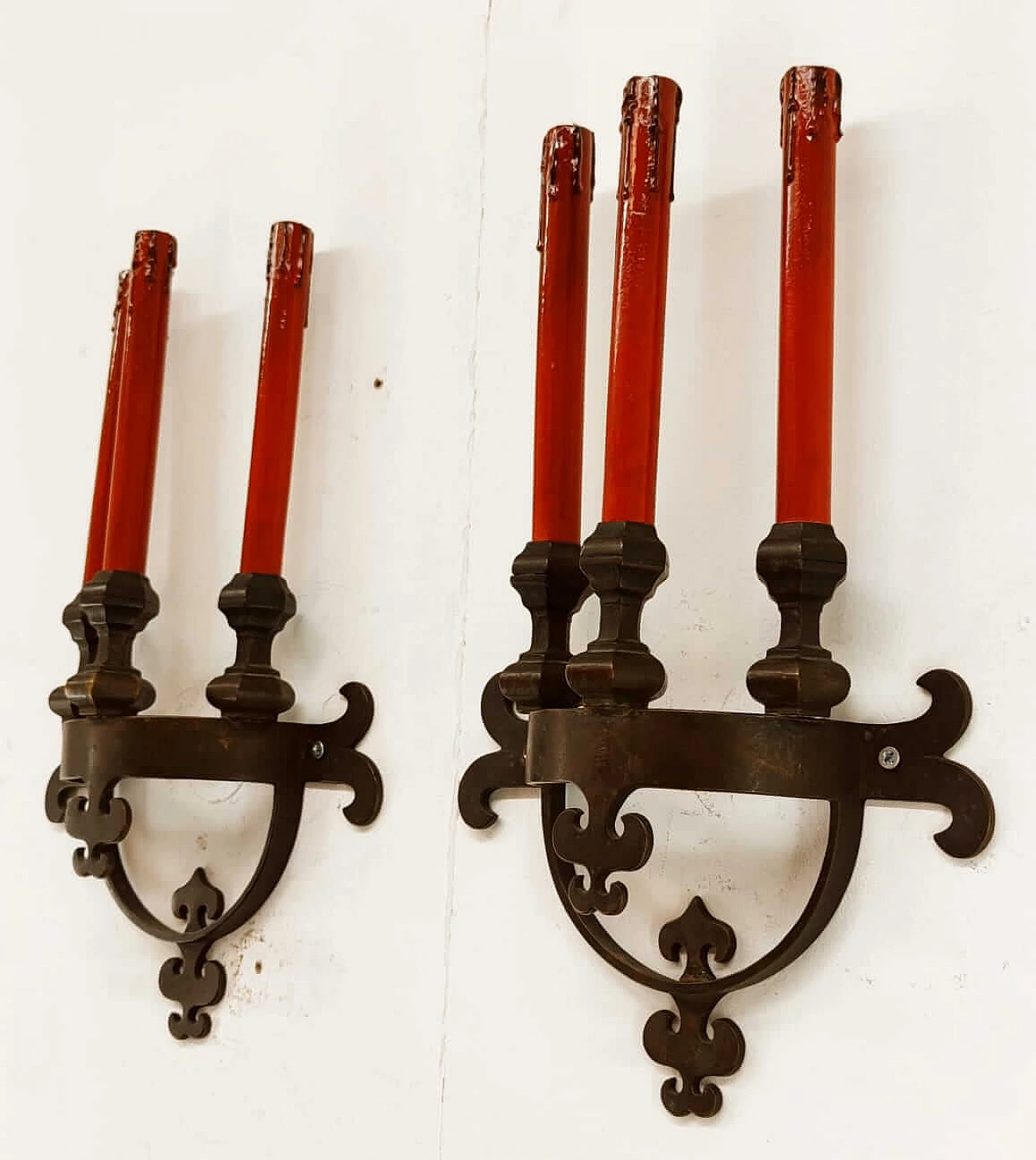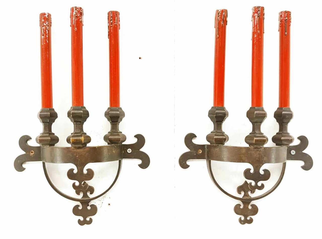 Pair of Neo Renaissance wall sconces in brass, 1940s
