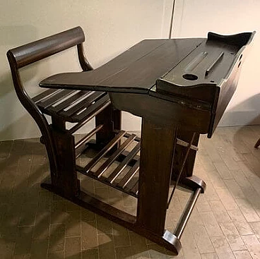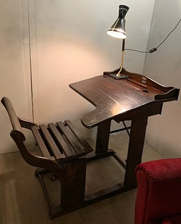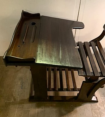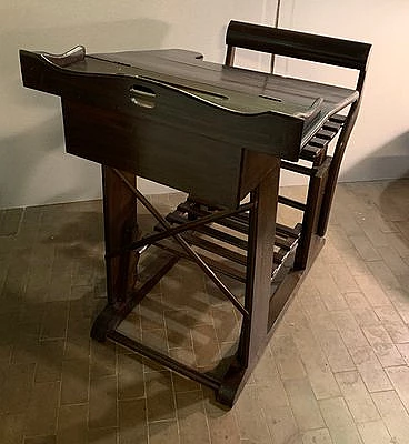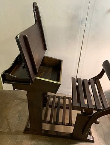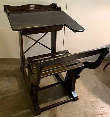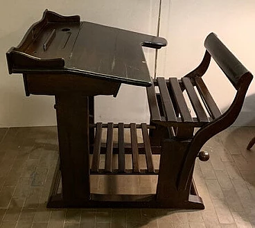 Writing desk in mahogany with adjustable seat and base, early 1900s