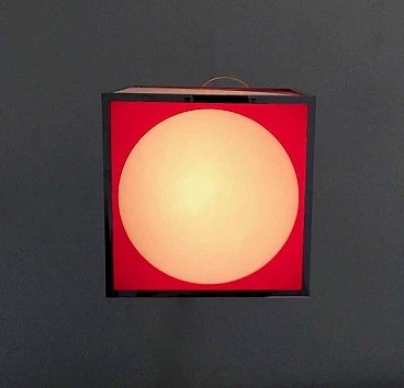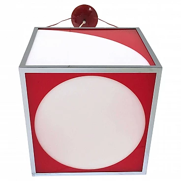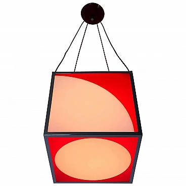 Red and white plexiglass and metal cubic chandelier, 1970s