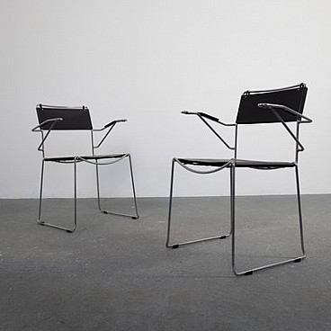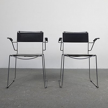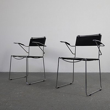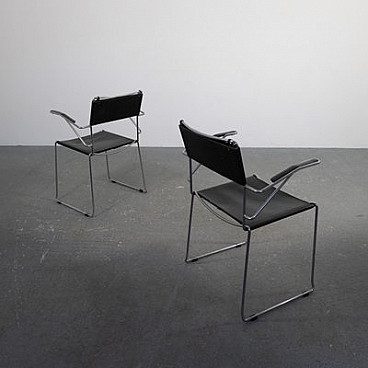 Pair of stackable leatherette and leather chairs, 1970s 17