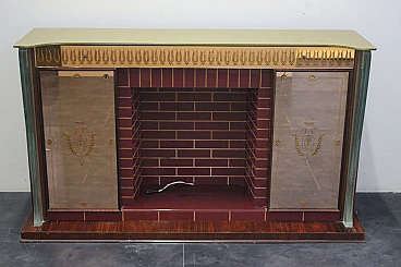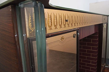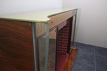 Bar cabinet in the form of a fireplace in rosewood and glass attributed to Fontana Arte, 1950s