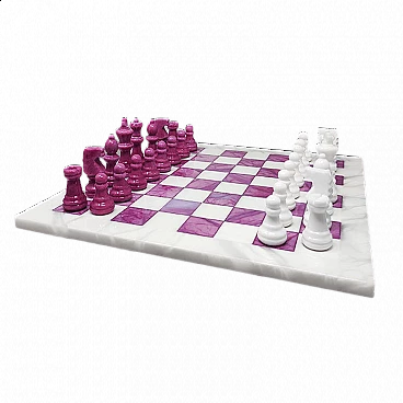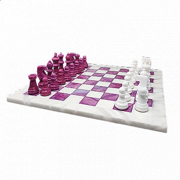 Chessboard in pink and white alabaster, 1970s
