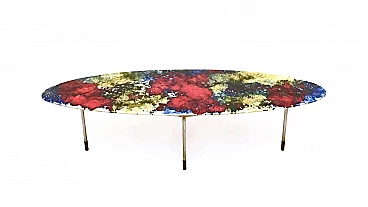 Oval coffee table by Stil Keramos in coloured ceramic, 1960s