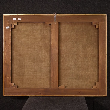 Antique Flemish landscape from the first half of the 18th century. Oil on canvas work depicting a landscape with figures and large tower, good painterly hand. Painting of nice size and pleasant decor adorned with modern carved and gilt frame. Painting of good depth with characters in the foreground characterized in the smallest details, excellent quality. It has undergone conservation restoration, frame replacement and color restoration in some places and has been restretched (see photos). Size without frame: 88 x 112 cm.