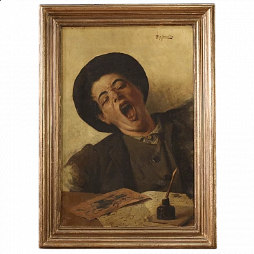 Oil on canvas Lo Sbadiglio signed Luigi De Servi, 19th century