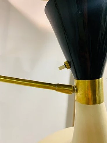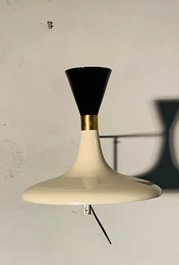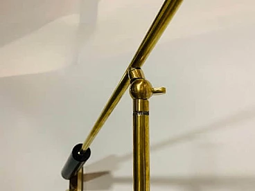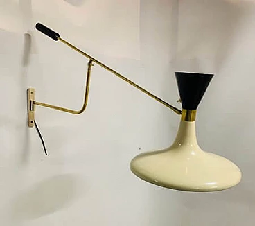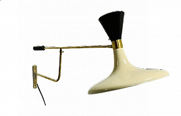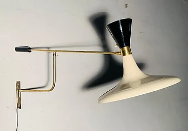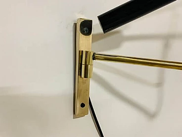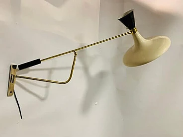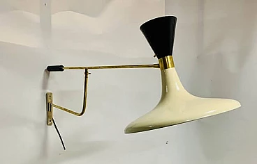 Arm lamp, the lamp has three joints that allow it any movement, both horizontal and vertical, also the hat can be moved. Mounts a single bulb downward. The cable of this item may be original and might need replacement, if not specified otherwise.