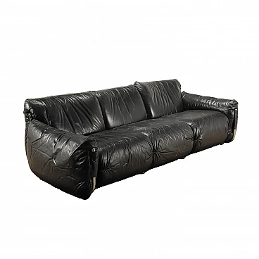 Sofa with chromed tubular structure, foam padding and leather upholstery.