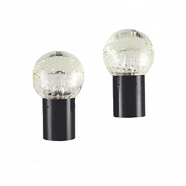 Pair of wall lamps in enamelled brass and glass in the style of Gino Sarfatti.