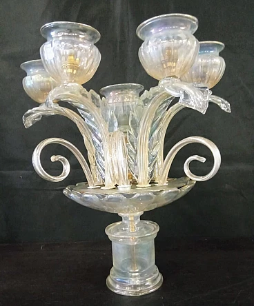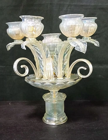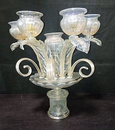 Pair of wall lights of exceptional quality, in transparent and iridescent gold glass, each piece has 5 light points with E-14 bulbs. They will be delivered with the electrical system fully functional and up to standard.