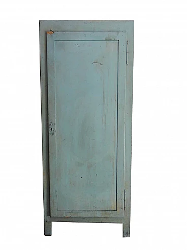 Original armoire from the 1960s,in fir wood painted in light blu color with one door. Needs restoration.