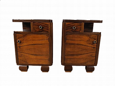 Pair of bedside tables in briarwood with brass knobs, 1940s