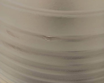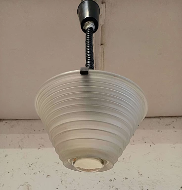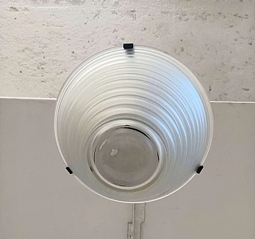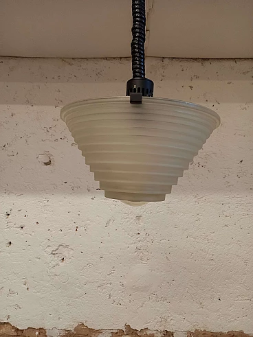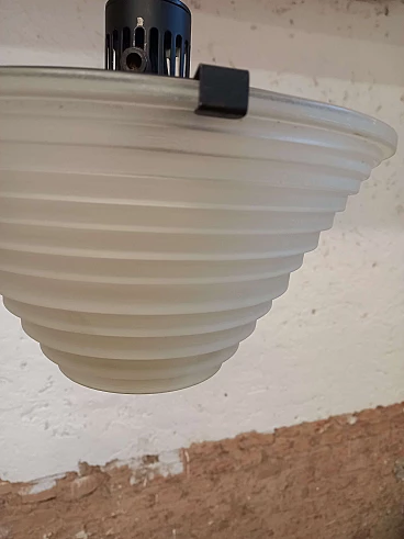 1970 sandblasted glass chandelier designed by Angelo Mangiarotti for Artemide. Good overall condition. Small chipping visible in photo.