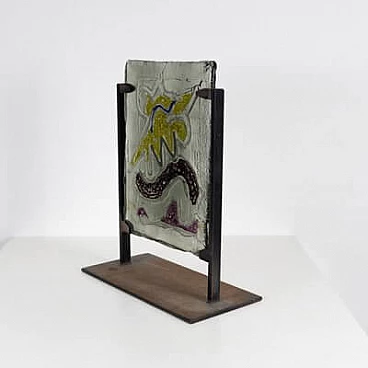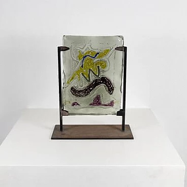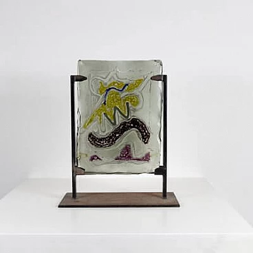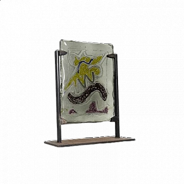 Decorative glass plate with metal base by Paolo Valle, 1970s