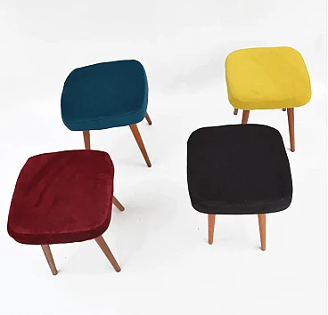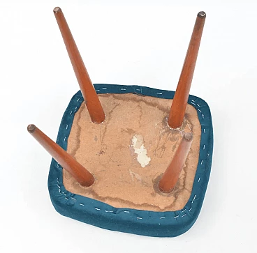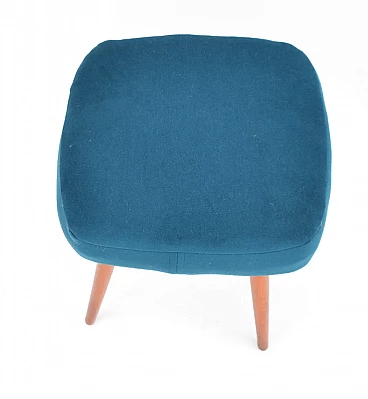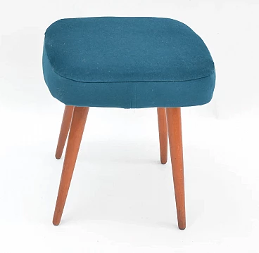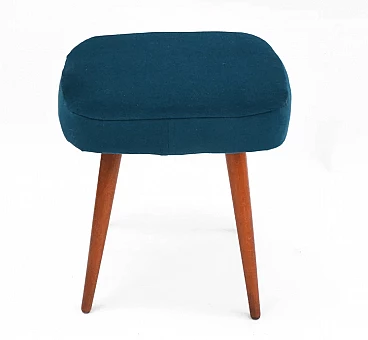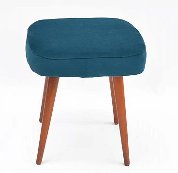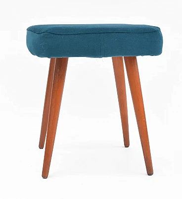 Beech wood and blue fabric stool by Dolnośląska Fabryka Mebli, 1960s