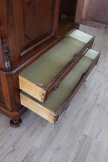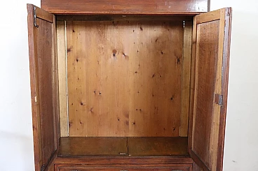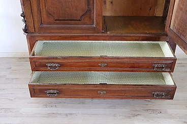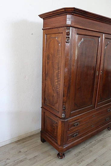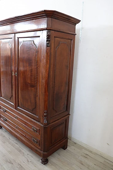 Delightful antique wardrobe from the last decades of the 19th century made of solid walnut. Equipped internally with a stick for hanging clothes and in the lower part with two practical and wide drawers. Very simple and linear, also suitable for insertion in a modern environment where a touch of warmth is desired. Very good condition possible wear and tear in the lining paper of the drawers. We advise you however to take a good look at all the attached photos in detail. MEASUREMENTS IN CM