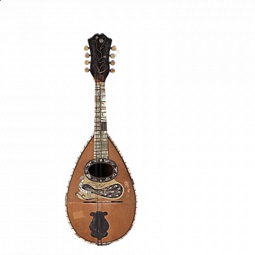 Wooden mandolin with mother-of-pearl inlays and carvings.