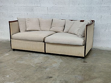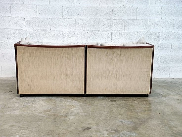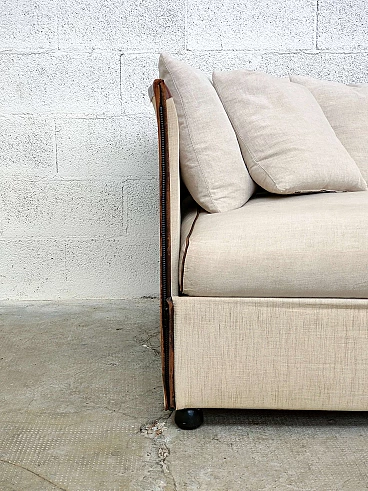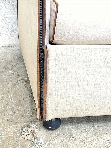 "Landeau" model sofa. Cassina production, Meda, Italy. Production from 1976 to 1991. Cover in raw linen fabric (code 134163) with leather profiles and hinges for joining the panels. Complete with cushions in the same fabric as the sofa. It is a classic Italian style sofa from the eighties which, thanks to its essential lines, retains the aspects of elegance and modernity. This two-seater version finds its place in many contexts both in the living area and in the sleeping area as well as in studios or offices.