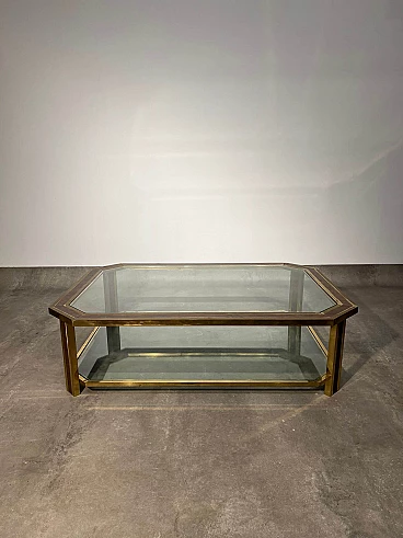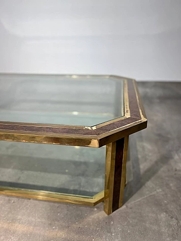 Small table in briarwood and brass with glass top, 1970s