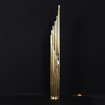 Brass-plated metal floor lamp with the possibility of triple switching. 1960s.