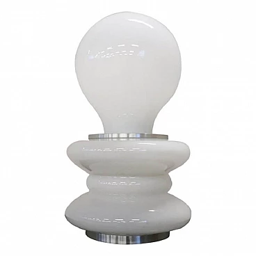 Italian design table lamp by Mazzega, 70s. The body is in precious white Murano glass and chromed metal. Perfect for a desk. Price negotiable send your proposals for purchase.