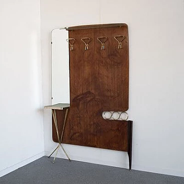 Brass and briarwood coat rack in the style of Gio Ponti, 1950s