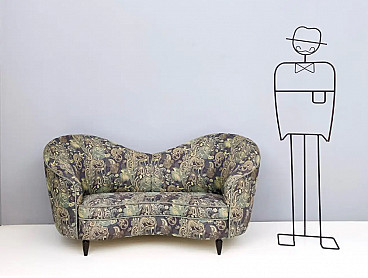 Beanbag sofa in wood and fabric by Gio Ponti, authenticated, 1930s