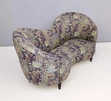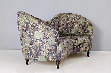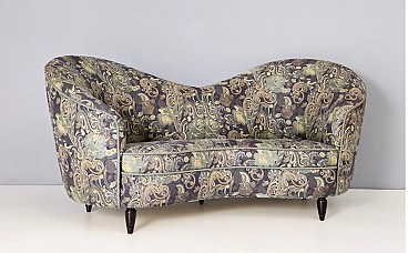 This Gio Ponti sofa has wooden structure and legs and fabric upholstery, which has recently been changed. It may have slight traces of use as it is vintage, but it can be considered in perfect condition and ready to become a piece of home.
