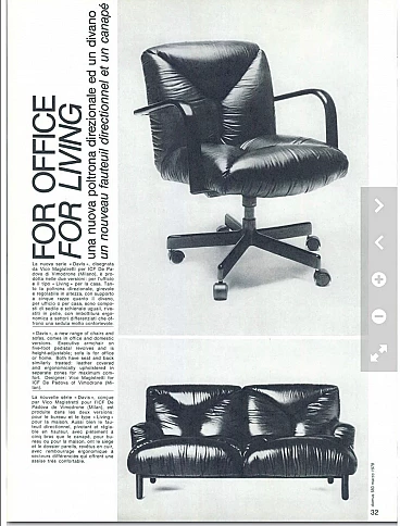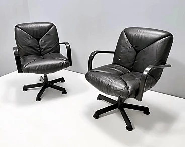 Pair of leather office chairs by Vico Magistretti for ICF Design, 1978