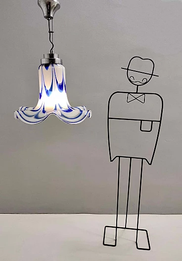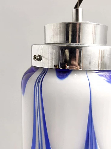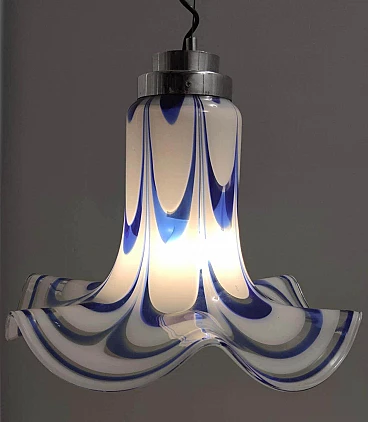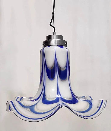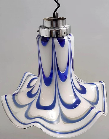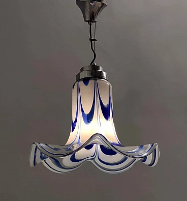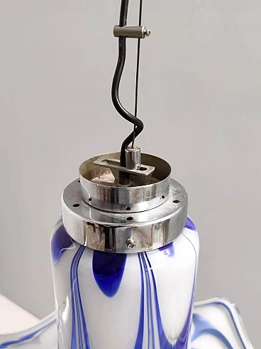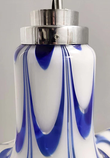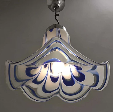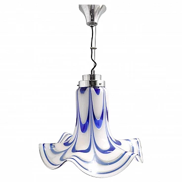 Blue and white Murano glass bell chandelier attributed to Mazzega, 1970s