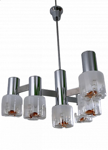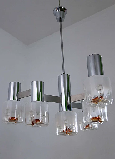 Three-armed blown glass and metal chandelier for Mazzega, 1970s