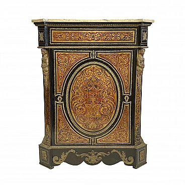 One-door cabinet in "Boulle" inlay with marble top, Napoleon III, mid-19th century