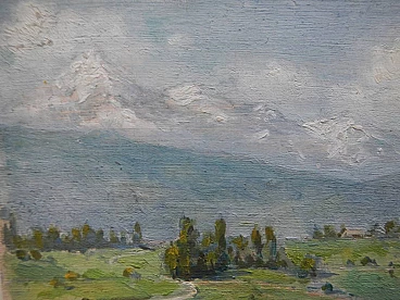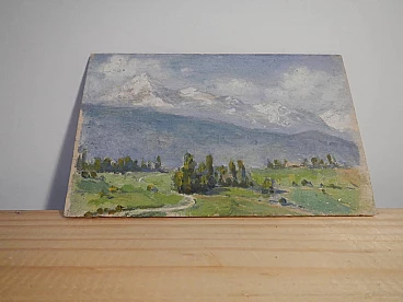 Des Champs, mountain landscape, painting on wood, early 20th century