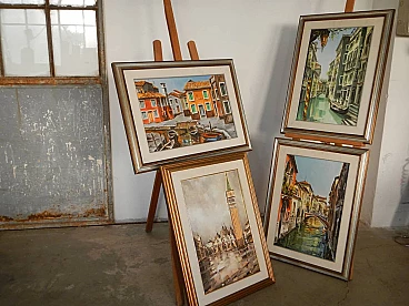 4 Oil paintings, Bruno Introvigne, Venetian views, 1970s