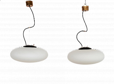 Pair of opaline glass ceiling lamps by Stilnovo, 1960s