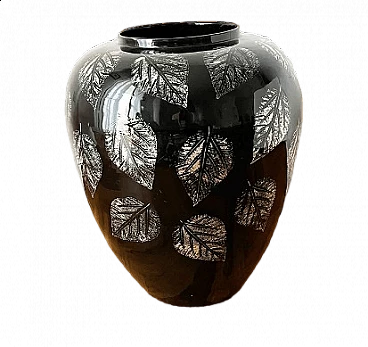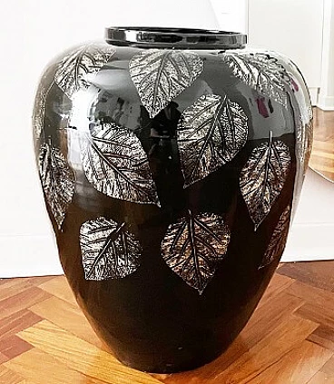 Black lacquered bamboo vase with gilded decoration, 1960s