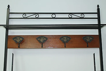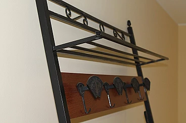 Art Deco metal and wood wall-mounted coat rack, early 20th century