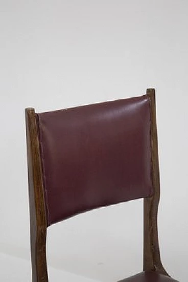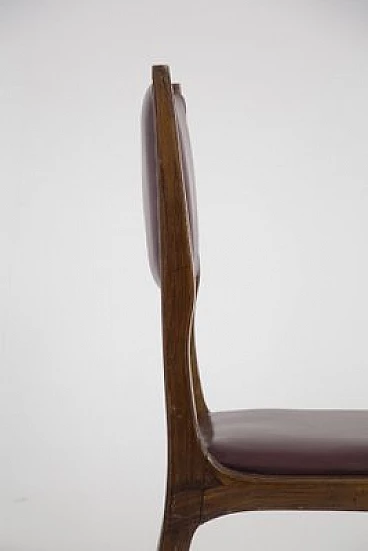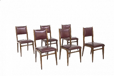 6 Wood and red leather chairs attributed to Carlo De Carli, 1950s