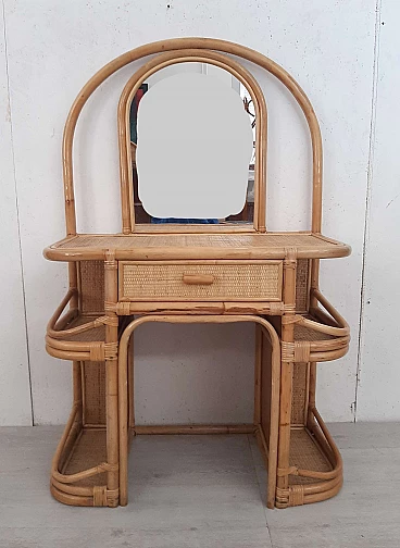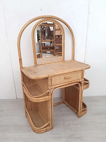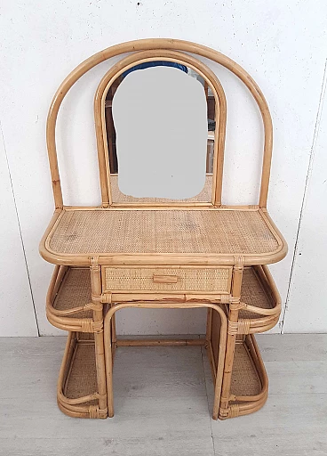 Bamboo dressing table with mirror and drawer, 1970s