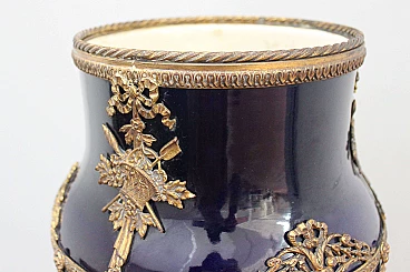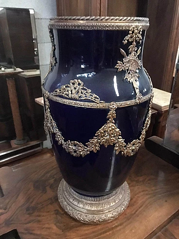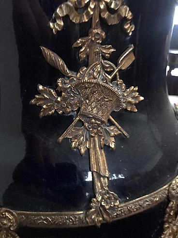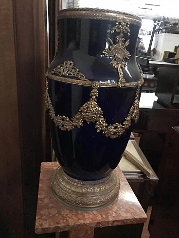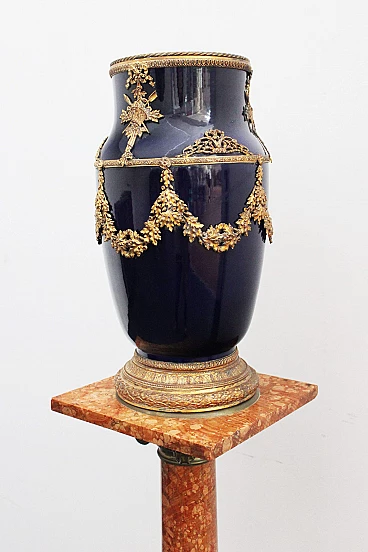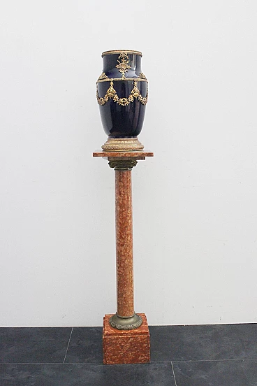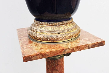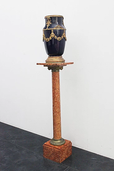 Blue vase on red marble column in Napoleon III style, early 20th century