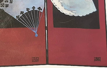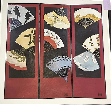 Three-panel screen with fans